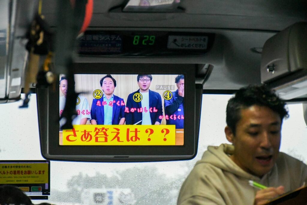 行きの車中ではメンバーが作成したクイズ動画で盛り上がりました!