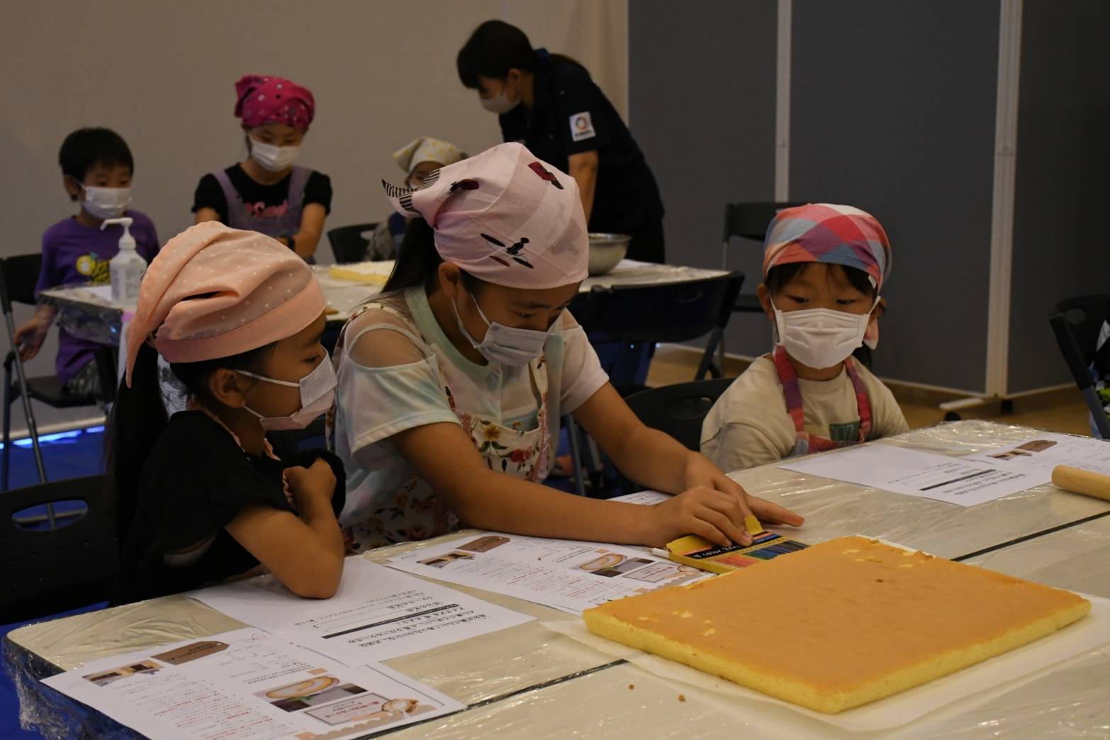 3人グループで協力しあってロールケーキをつくりました。