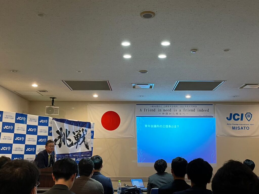 オブザーバーとしても野田JC鴨狩理事長をはじめといたしますメンバーの皆様、流山JC石山理事長をはじめといたしますメンバーのみなさまにお越しいただき、3LOMが集まった刺激ある例会になりました。